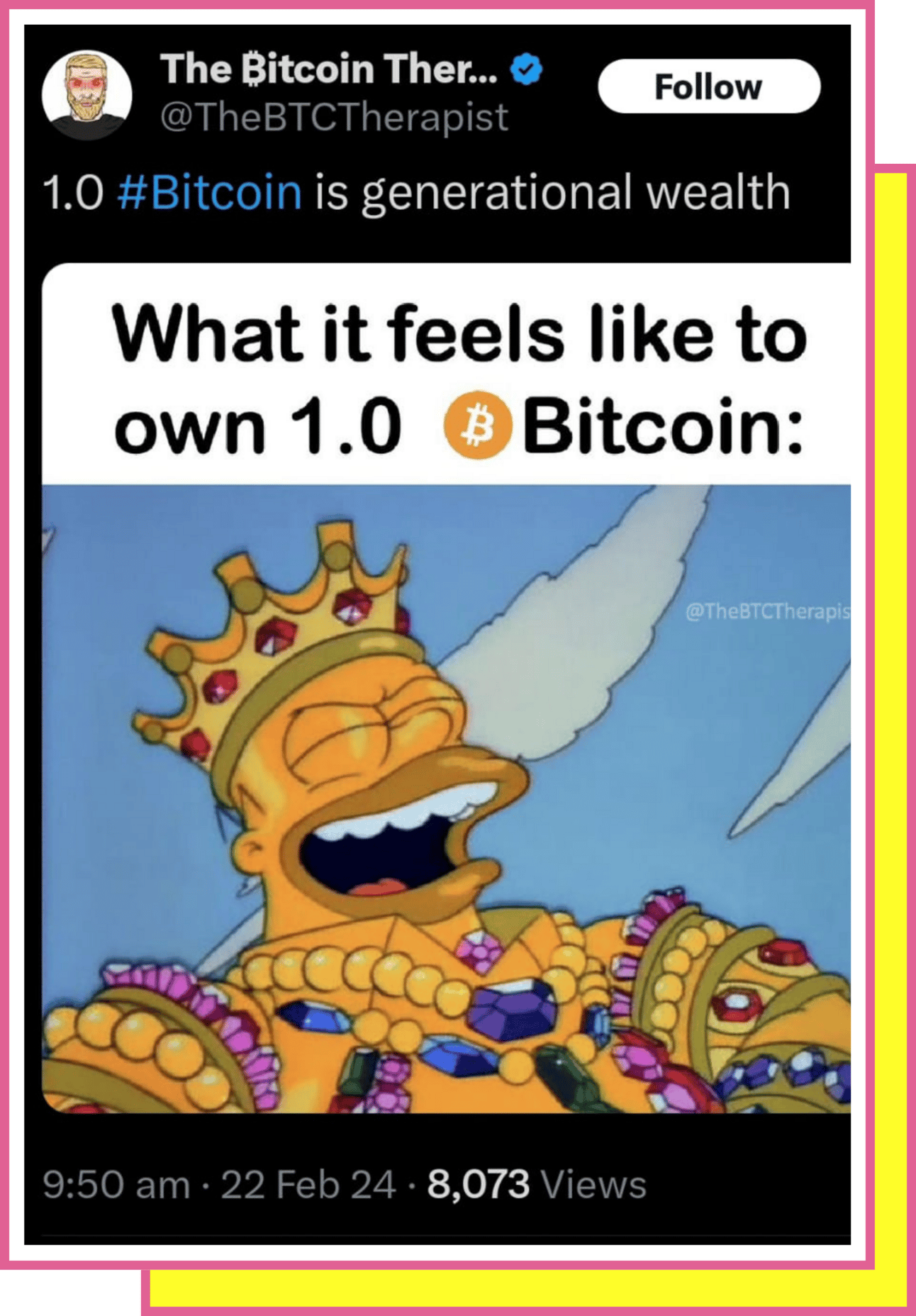 “The Bitcoin, in its majestic equality, forbids rich and poor alike to sleep under bridges, beg in the streets or steal bread.”