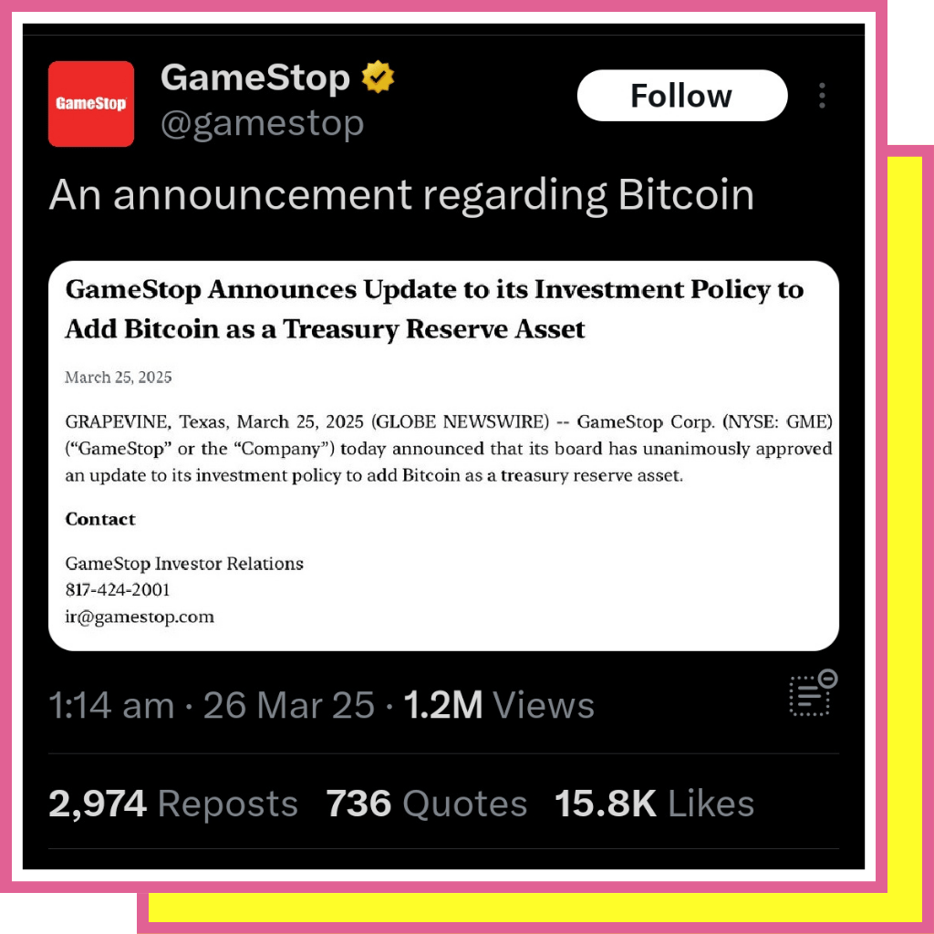 ⚡GameStop’s Bold Bitcoin Plan🎮