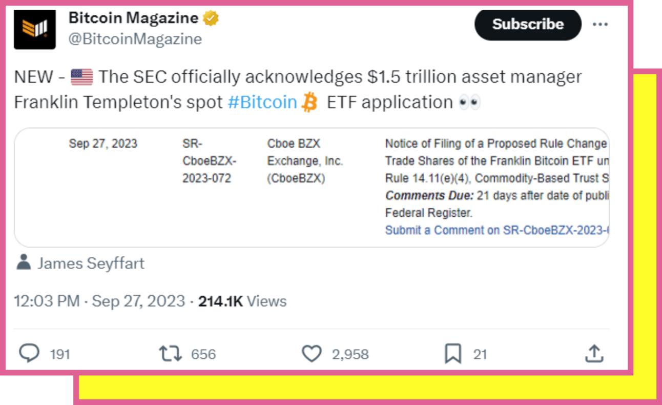 Their argument is that these kinds of investment products provide a safe and regulated way for people to invest in Bitcoin. They believe that if the SEC doesn't approve these types of ETFs, it could push investors to put their money into riskier and less regulated options.